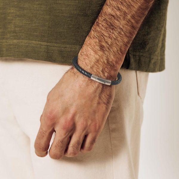 Ce bracelet en cuir tressé apportera une touche d’élégance à votre poignet. Son fermoir métallique argenté lui confère un look moderne et masculin.