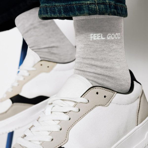 Adoptez un look décontracté et stylé avec ces chaussettes hautes fantaisies. On aime l’inscription ‘FEEL GOOD’ pour un style affirmé.