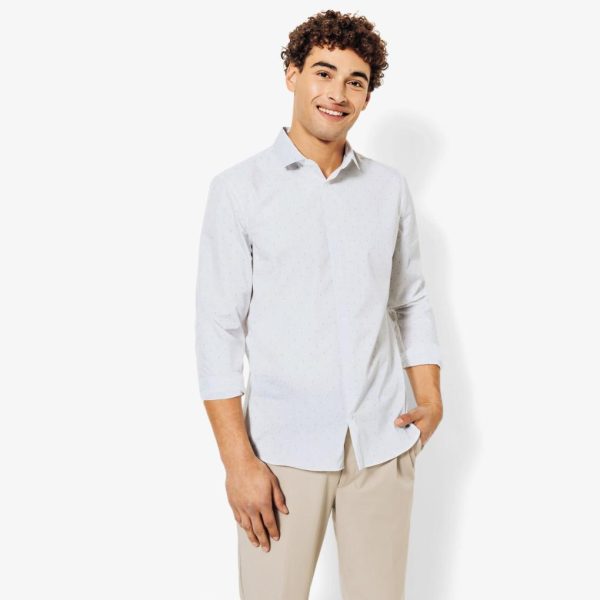 Chemise sans repassage en coton imprimée Blanc