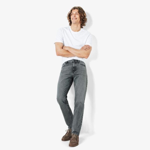 Ce jean se porte facilement avec un t-shirt basique à col rond et des baskets blanches pour un look décontracté. Pour une allure plus habillée, on peut l’associer à une chemise et des derbies.