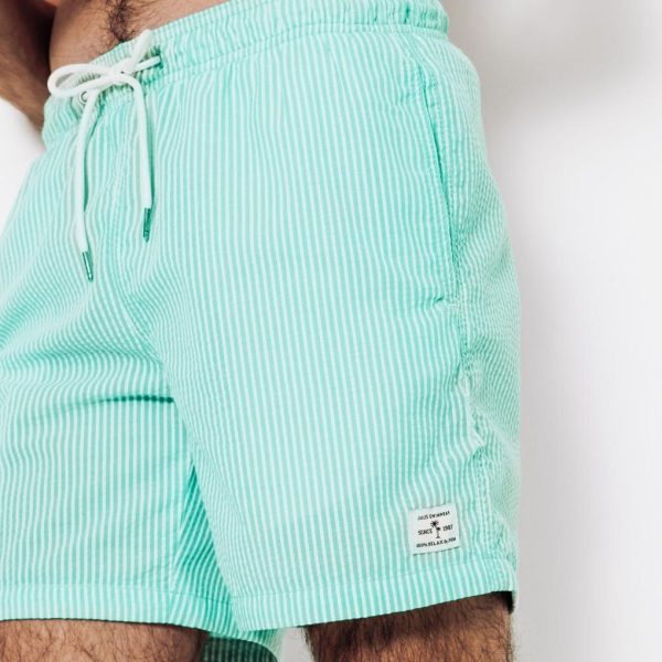 Jules Maillot De Bain Seersucker Rayé Vert Vert | Homme Maillot De Bain
