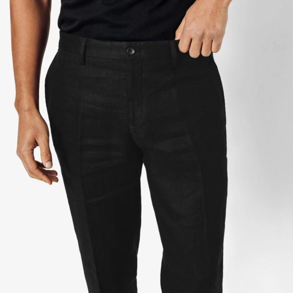 Ce pantalon de costume confort en lin,avec ses plis marqués, vous offre une allure élégante et décontractée.