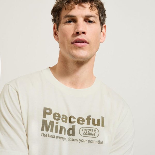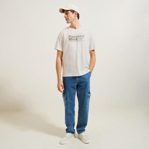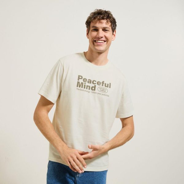 Tee shirt col rond imprimé en coton Blanc