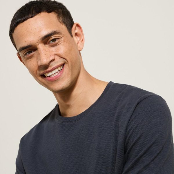 Ce tee-shirt en matière reliefée en coton élasthanne, est essentiel dans le dressing masculin et matche avec tout, au grès de vos envies !